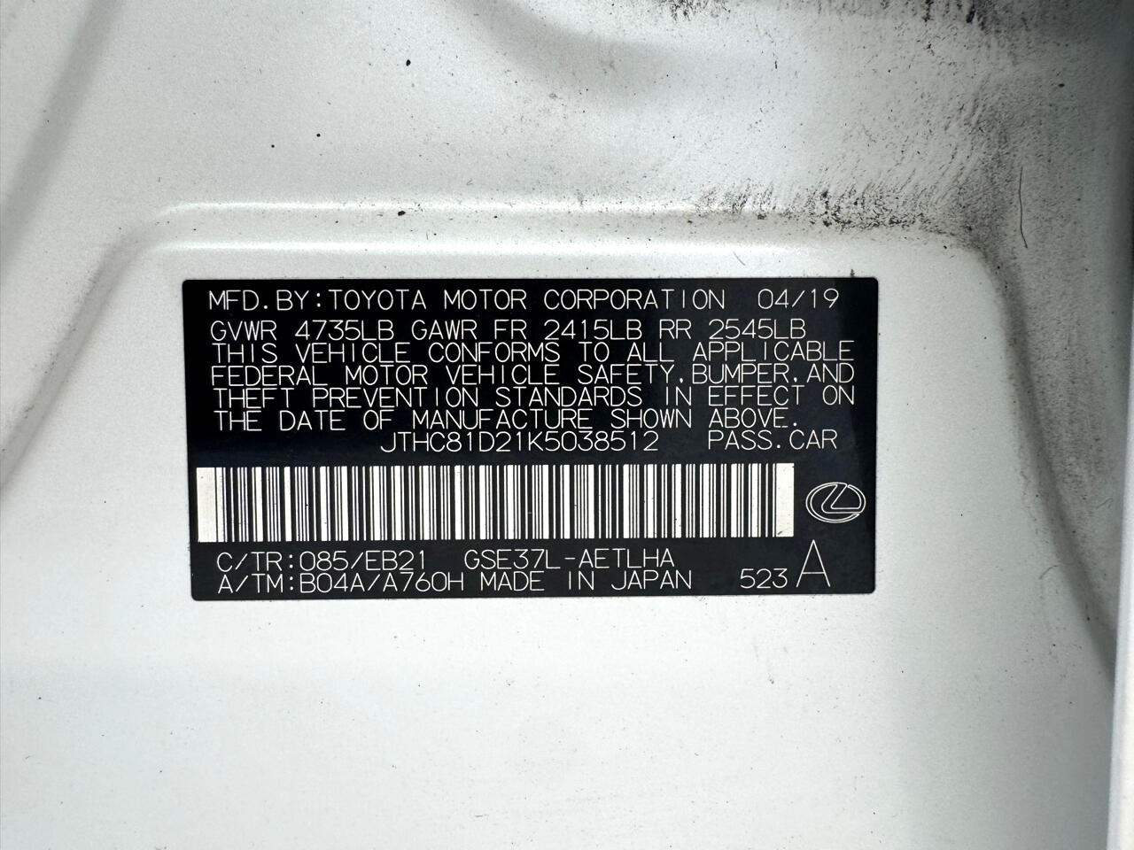 JTHC81D21K5038512