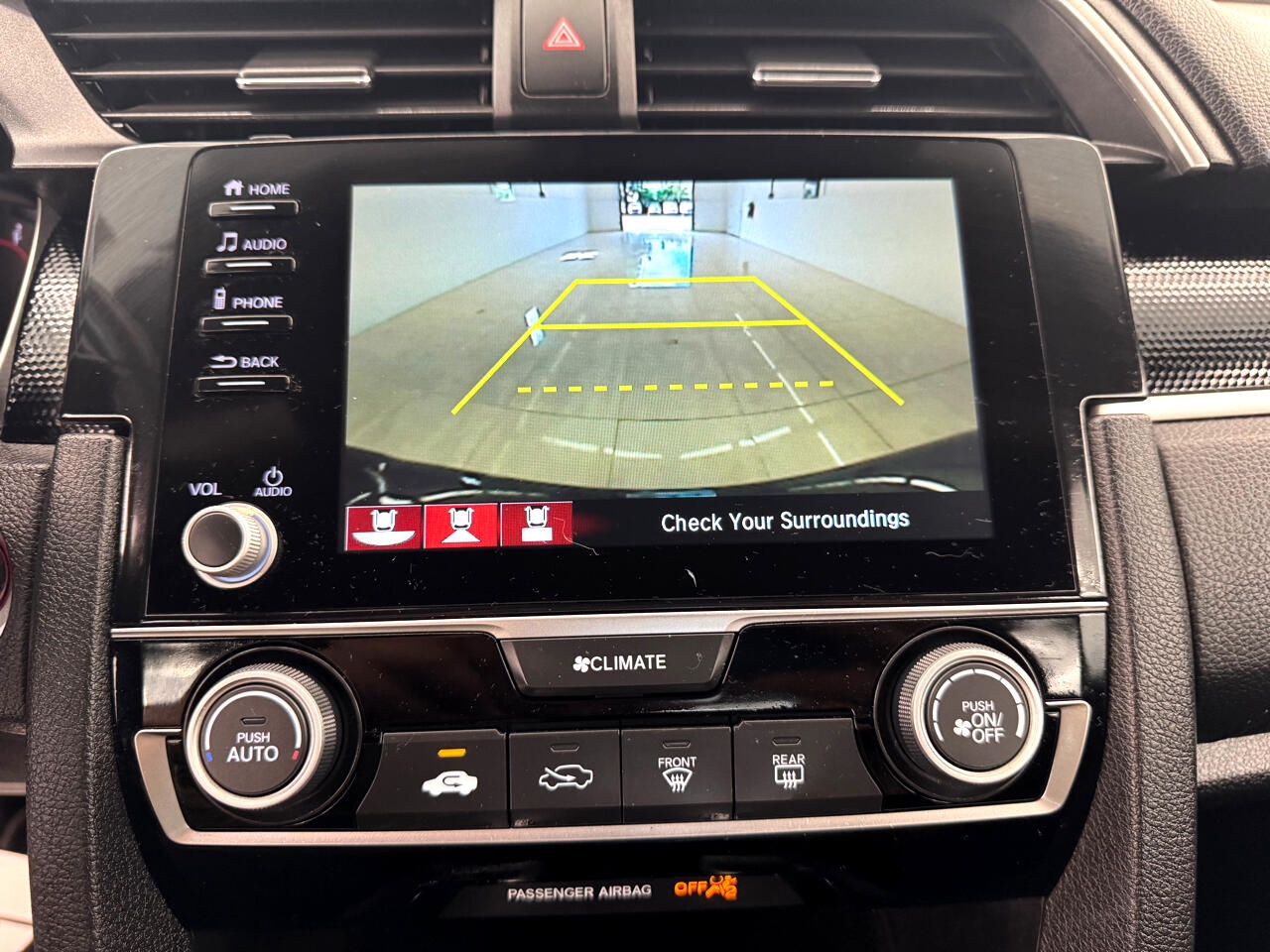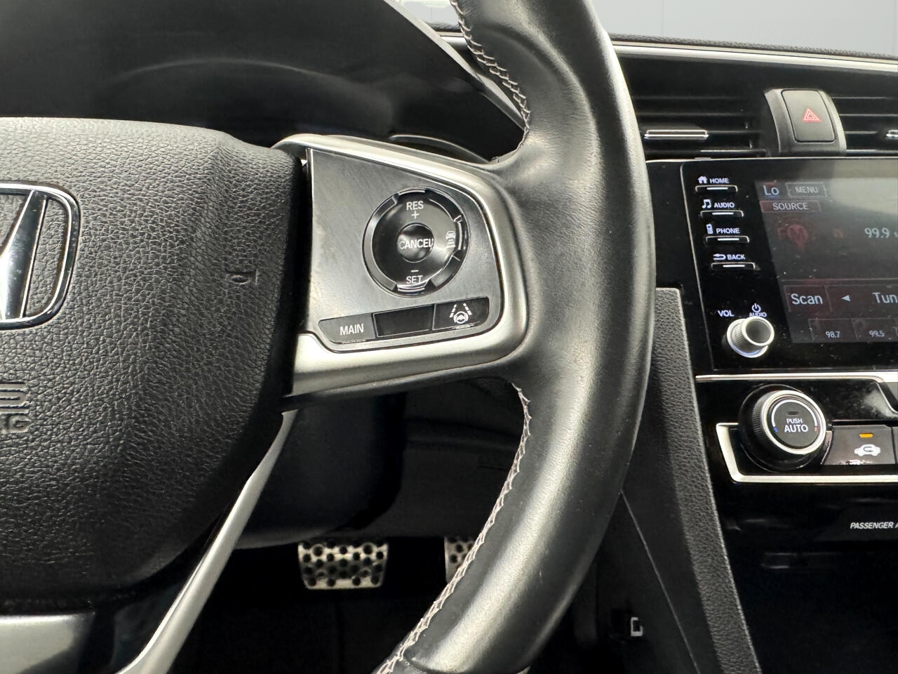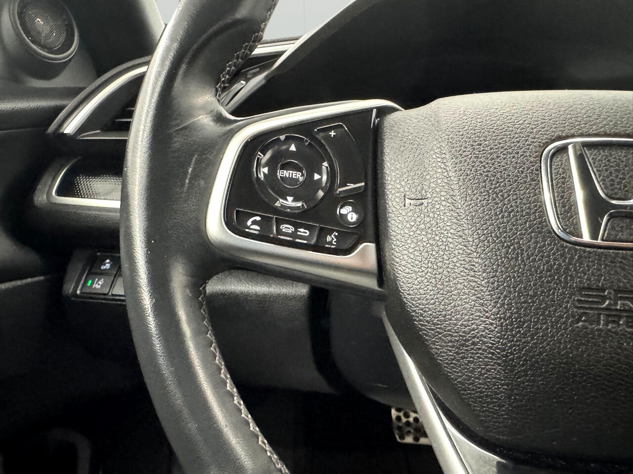 Packed with modern features like adaptive cruise control, automatic air conditioning, and a back-up camera, this Civic is designed to keep you comfortable and safe on every journey. The interior boasts a leather-wrapped steering wheel, comfortable front bucket seats, and plenty of storage options for your convenience.