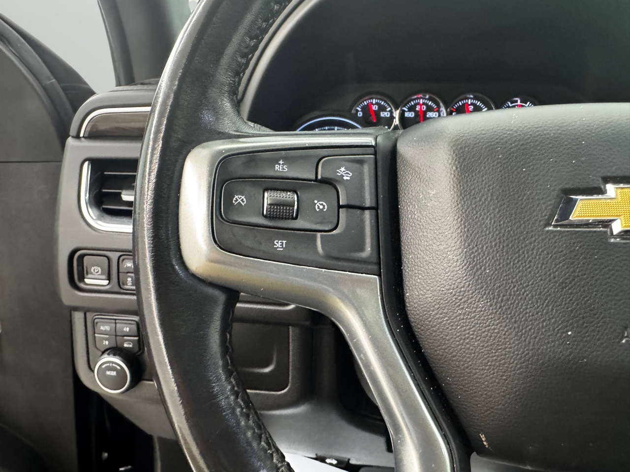 But it's not just about brawn - this Tahoe also offers a luxurious and comfortable interior with power-adjustable seating, a leather-wrapped steering wheel, and a user-friendly 8" diagonal touchscreen infotainment display. Stay connected on the go with Wi-Fi Hotspot capability and USB charging ports conveniently located throughout the vehicle.