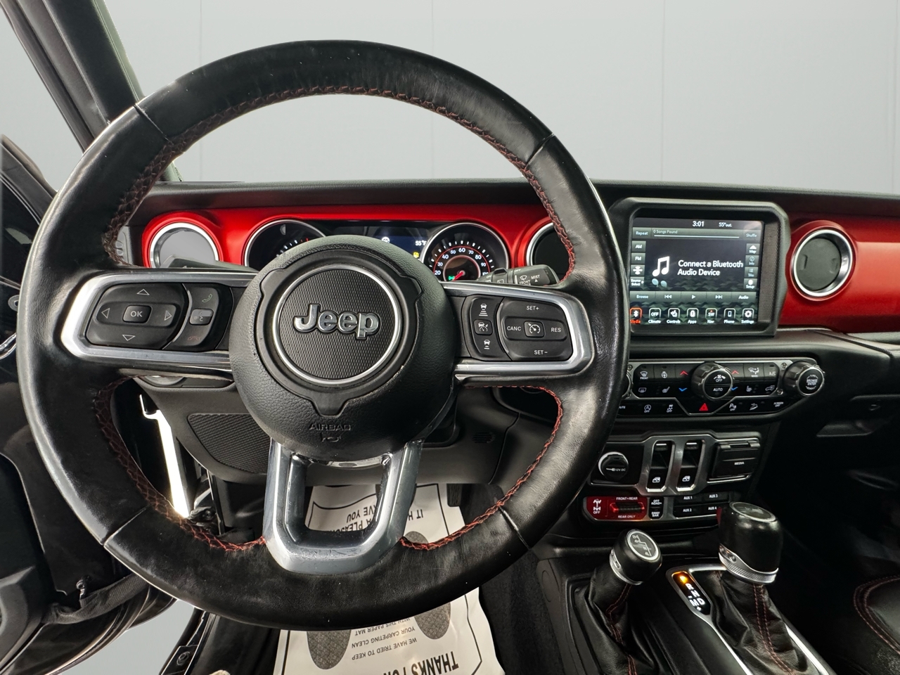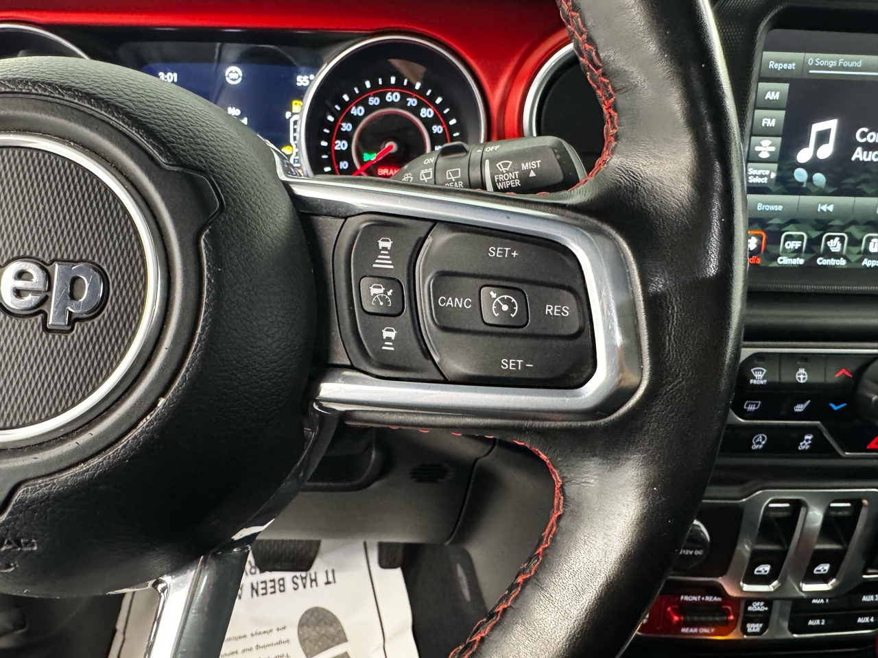 Featuring a spacious and comfortable interior with dual-zone air conditioning and plenty of storage options, you'll be riding in both comfort and convenience. The leather steering wheel and premium cloth seats add a touch of luxury to this tough vehicle.